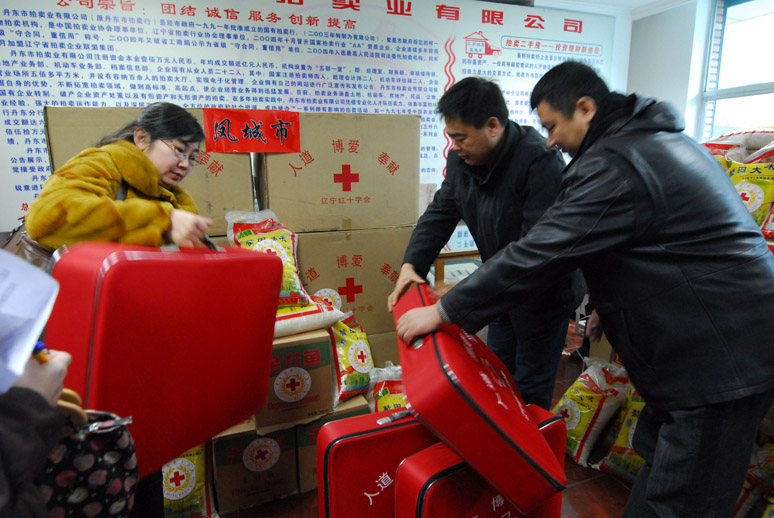 1月18日上午,2010年“红十字博爱送万家”活动丹东市物资发放仪式在丹东市泰和小区隆重举行。丹东市红十字会争取省红十字会调拨和自筹总计400余件价值7万余元的物资。“红十字博爱送万家”活动主要是向社会贫困弱势群体送去党和政府的温暖,感受红十字组织的关爱;同时在丹东市红十字会常务副会长石漉同志的陪同下,丹东市人民政府副市长、丹东市红十字会会长于梅同志走访贫困群众,并慰问在丹的日本遗孤的养父母。