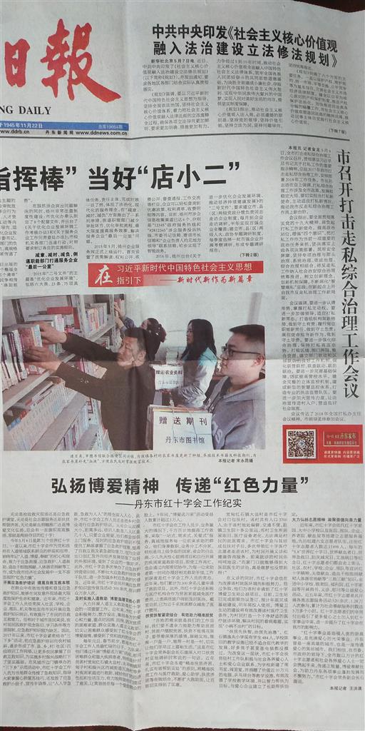 三、在《丹东日报》头版显著位置刊登《弘扬博爱精神 传递“红色力量”——丹东市红十字会工作纪实》,营造良好舆论氛围,推动我市红会事业发展。
