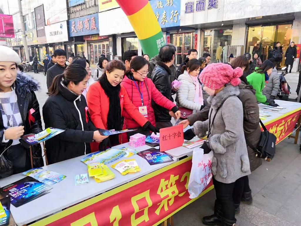 2018年12月1日是第31个“世界艾滋病日”,为响应国务院防治艾滋病工作委员会办公室的号召,进一步推动艾滋病防治工作,全面落实《中国遏制与防治艾滋病“十三五”行动计划》,营造全民参与艾滋病防治工作的良好氛围,宽甸县红十字会联合卫计局、县疾控积极开展艾滋病防治宣传活动,今年的活动主题是“主动检测、知艾防艾、共享健康”。此次宣传活动参与活动人员数量约20人,志愿者数量20人,受益群众约200人,发放宣传手册近千份。