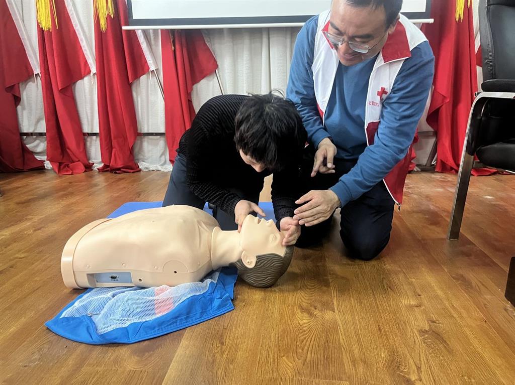 在活动现场,区红十字会工作人员通过生动的讲解和演示,向村民们传授了现场急救知识,培训分理论授课和分组实操两部分进行。红十字救护师资详细讲解了心肺复苏和人体自动体外除颤仪的操作要点及流程,并对每个动作进行了现场演示。村民们认真领会、积极动手,努力掌握急救技能,同时,志愿者们还手把手指导村民们进行实际操作练习,让他们在实践中掌握应急救护技能。此外,活动还发放了应急救护宣传资料,帮助村民们进一步了解应急救护知识。