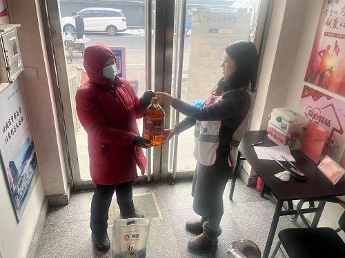 2023年1月13日振安区红十字会在全区范围内组织召开“博爱送万家”活动,涉及五个镇街,为100个贫困户、低保户、低保边缘户送去大米和豆油,受益群众达到200多人。在春节来临之际为他们送去了关怀和问候,体现了“人道、博爱、奉献”的红十字精神。
