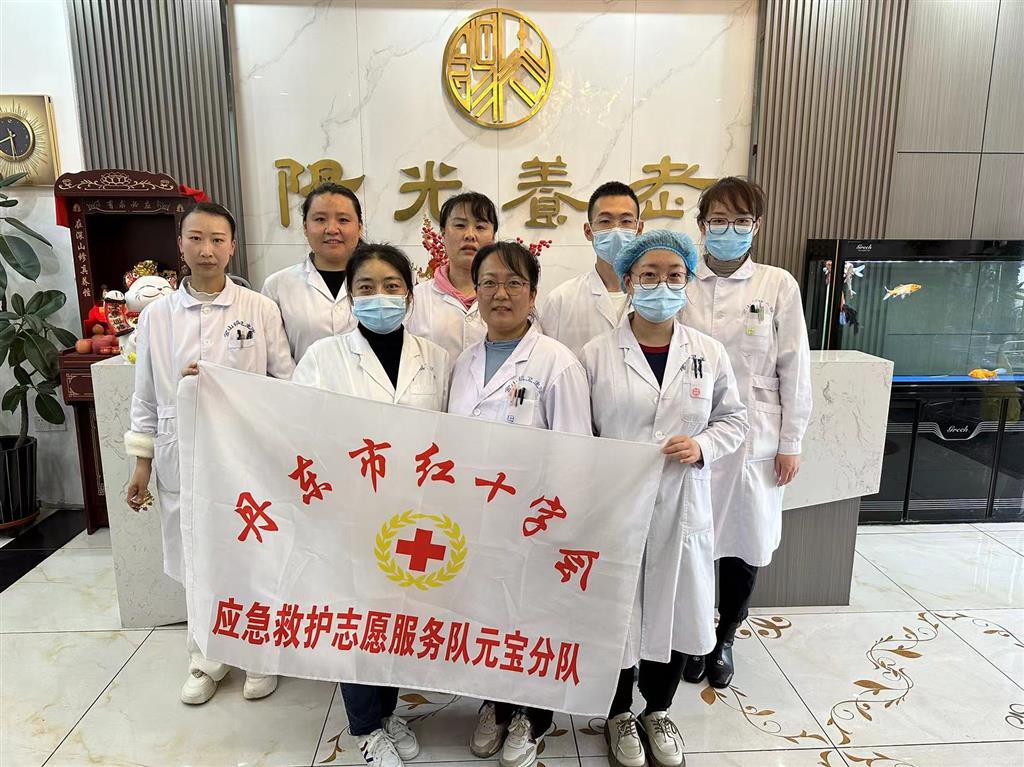 在“5.8世界红十字日”来临之际,元宝区红十字会组织专业医护人员组成的志愿服务队,为金山镇阳光养老院的老人上门提供义诊服务,满足老年人的健康服务需求。